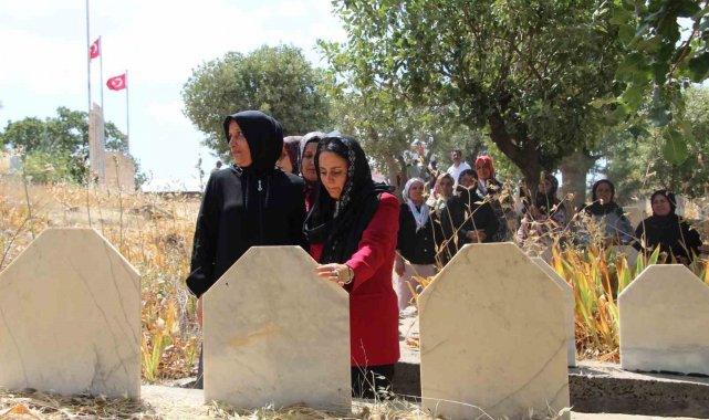 Çevrimli'de terör örgütü PKK tarafından 10 Haziran 1990'da gerçekleştirilen saldırıda hayatını kaybeden 12'si çocuk, 7'si kadın 27 kişiyi anmak için köy mezarlığında düzenlenen törende, Kur'an-ı Kerim okundu.