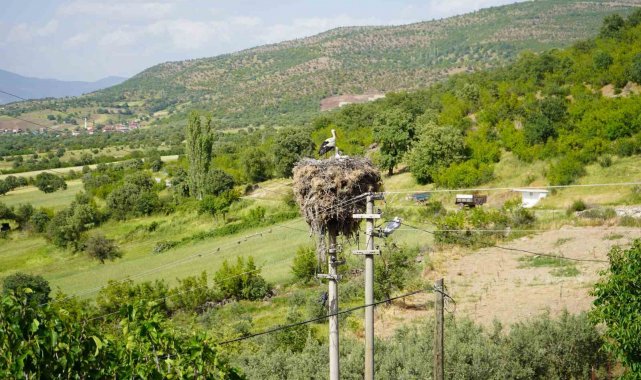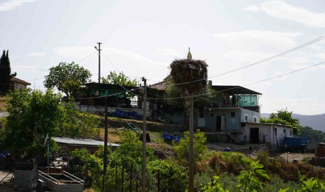 Manisa'nın Demirci ilçesinde 25 yıl önce elektrik direğine yuva yapan leylek, mahallenin simgesi haline geldi. Her yıl aynı yuvaya gelen leylek, yılda en az dört yavru yetiştiriyor.