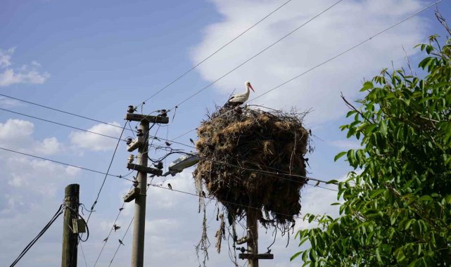 Çeyrek asırlık leylek yuvası mahallenin simgesi oldu
