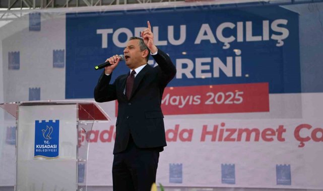 Kuşadası Belediyesi Ana Hizmet Binası önünde düzenlenen törende konuşan CHP Genel Başkanı Özel, Kuşadası Belediye Başkanı Ömer Günel tarafından yaşama geçirilen hizmet ve projelerden övgüyle söz ederek, "İşte sosyal demokrat belediyecilik, işte CHP'li belediye" dedi.