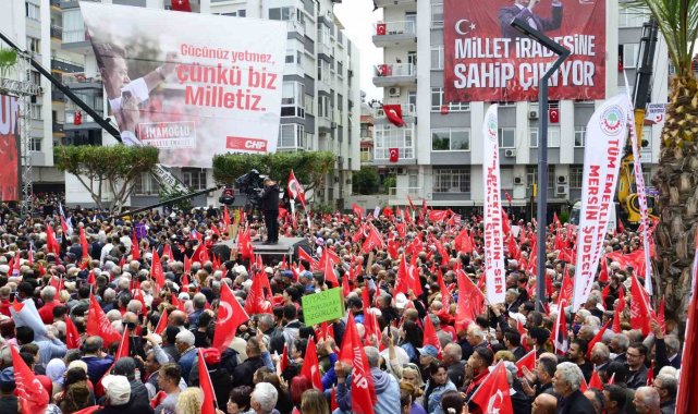 Mersin Büyükşehir Belediye Başkanı Vahap Seçer'in de konuşma yaptığı mitingde Ekrem İmamoğlu'nun mesajı da okundu.