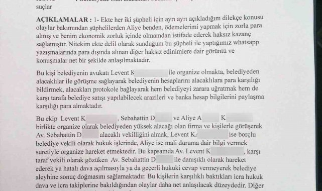 2018 yılında girdiği ihaleleri kazanan ve malzemeleri belediyeye teslim ettiğini ifade eden Emrah Köse yaşadığı süreci şöyle anlattı: "2019 yılında yerel seçimi CHP kazandı. 9-10 milyon lira alacağım vardı. Belediye Başkanı Zeydan Karalar, 'Bu malları bizim dönemimizde vermedin. Sana para vermeyeceğiz' dedi. Daha sonra belediyede birilerinin vasıtasıyla A. A.'ya yönlendirildim. Dönemin Mali Hizmetler Daire Başkanı olan A. A. paramı vereceğini ancak avukatımı değiştirmemi istedi. Avukatımı değiştirdim. Ondan sonra rüşvet çarkının içine girdim. Bana tencere, tava ve tabak görselleri atmaya başladı. Hatta tencerelerin derinlik santimini bile yazıyordu. Malzemeleri teslim ettiğim zaman parça parça ödeme veriyorlardı. Nakit parayı ise liseye giden oğluna otoparkta elden teslim ediyordum."