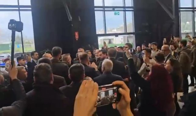 Salonda kalabalıkların birbirine yürümesi üzerine Büyükgöz, "Arkadaşlar lütfen geri çekilin" diyerek tarafları sakinleştirmeye çalıştı.