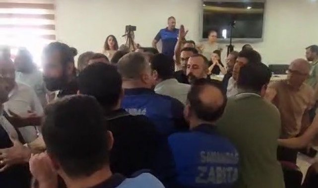 Türkiye İşçi Partili (TİP) Emrah Karaçay, 31 Mart yerel seçimlerinde Samandağ Belediye Başkanı olarak seçimi kazanırken, belediye meclis seçimlerinde CHP birinci gelerek mecliste çoğunluğu elde etti. Dün gerçekleşen Samandağ Belediye Meclisi ek oturumu esnasında; CHP'li meclis üyesi İbrahim Aydoğan, Belediye Başkanı Karaçay'a küfür etti. CHP'li meclis üyesinin küfrettiği anlar ve sonrasında ortalığın savaş alanına döndüğü anlar kameraya yansıdı.