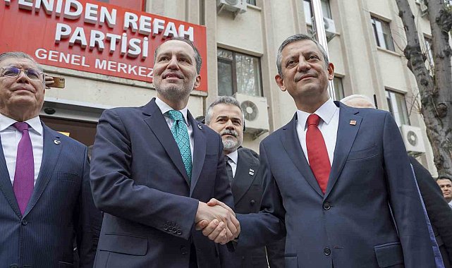 CHP Genel Başkanı Özgür Özel, Yeniden Refah Partisi Genel Başkanı Fatih Erbakan'ı parti genel merkezinde ziyaret etti. Özel'e ziyaretinde CHP Genel Sekreteri Selin Sayek Böke ile Genel Başkan yardımcıları Ensar Aytekin ve Sevgi Kılıç eşlik etti. Ziyaretin ardından Özel ve Erbakan, basın mensuplarına açıklamalarda bulundu.
