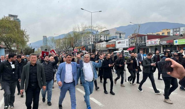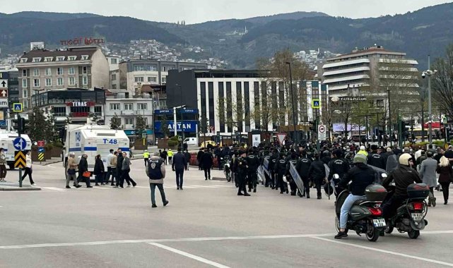 Eylem sırasında toplanan grup sık sık "Bursa'nın başkanı Mustafa Bozbey" sloganları atarak destek gösterisinde bulundu.