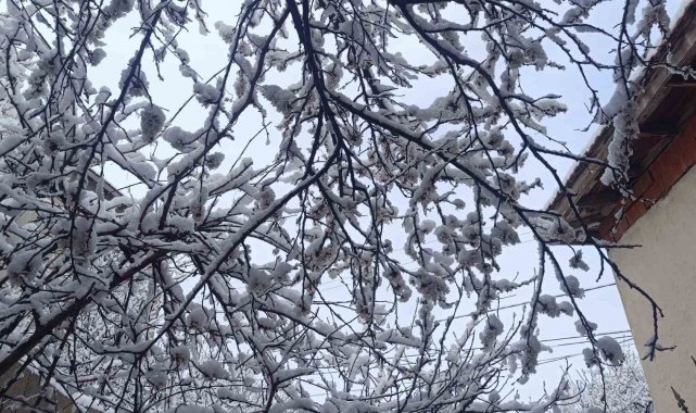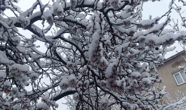 Yozgat'ta ilkbaharda çiçek açan ağaçlar, kentte etkili olan kar yağışıyla beyaza büründü.