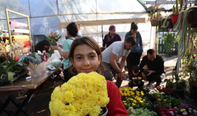 8 yaşındaki Zeynep Miray Atik adlı öğrenci, öğretmenine sürekli hatırlanacak renkli bir çiçek almak istediğini, o yüzden seraya geldiklerini ifade etti.