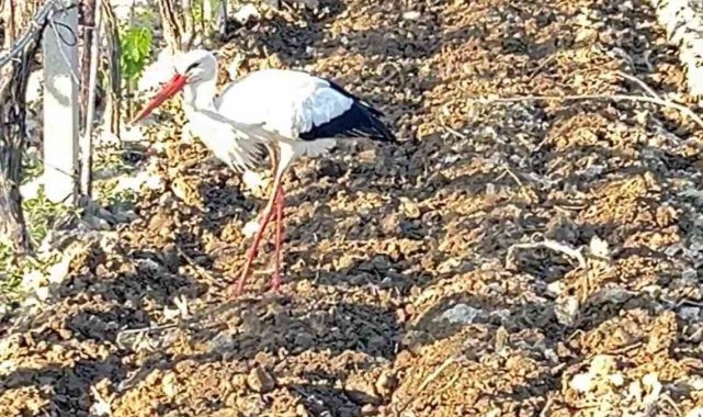 Çevrede ender görülen leyleğin kendisini eşlik ettiğini belirten üzüm üretici Halil Duran, "Leylekler artık eskisi gibi çok görülmüyor. Bağımda traktörümle yağışlardan sonra çift sürmeye başladım. Bir baktım çift sürdüğüm sıraların arasında bir leylek hiç kaçmadan topraktan gagasıyla bir şeyler toplayarak yiyor. Ben çift işimi bitirene kadar peşimden ayrılmadı. Karnını doyurup uçup gitti." dedi.
