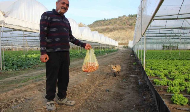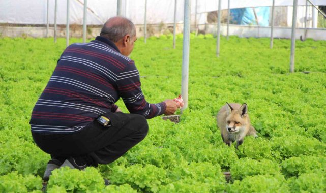 Çiftçi ile tilkinin sıra dışı dostluğu: Serasını koruyan tilkiyi et ve dönerle besliyor
