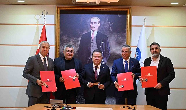 Başkan Muhittin Böcek, 4 ilçede uygulanacak proje için Alanya Belediye Başkanı Osman Tarık Özçelik, Serik Belediye Başkanı Dr. Kadir Kumbul, Aksu Belediye Başkanı İsa Yıldırım ve Kemer Belediye Başkanı Necati Topaloğlu ile bir protokol imzaladı.