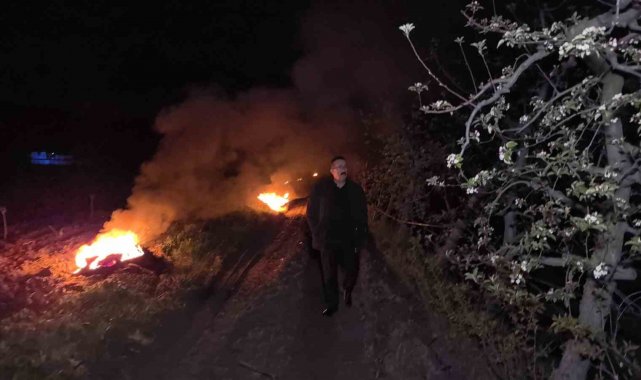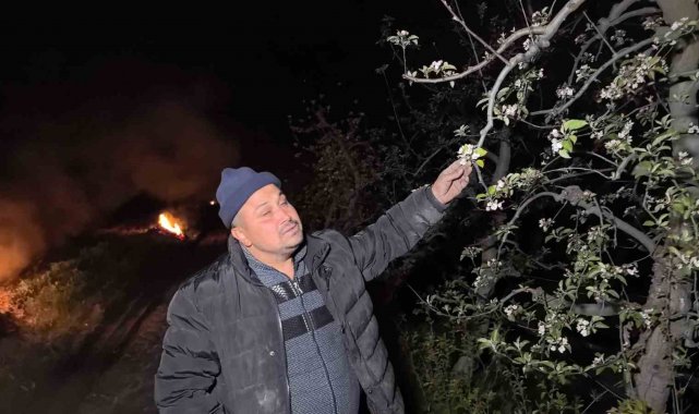 Elma bahçesinde ateş yakan bahçe sahibi Ahmet Kocaçepel,"Geçtiğimiz akşam bahçelerimiz hasar gördü. Kalan çiçekleri de korumak için böyle bir yöntem yaptık. Eski bir gelenektir zaten ateş yakmak" dedi.