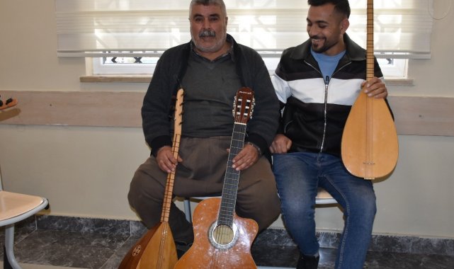 Çiftçiler müzik kursunda gitar ve bağlama öğreniyor