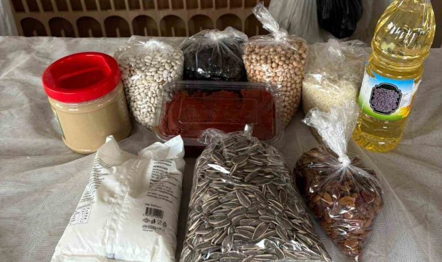 Erzak paketinde, 1 kilo nohut, 2 kilo kuru fasulye, 1 kilo siyah zeytin, 1 kilo yeşil zeytin, 1 kilo salça, 1 kilo tahin, yarım kilo üzüm, 1 kilo bulgur bulunduğunu belirten Altıntaş, şunları söyledi: