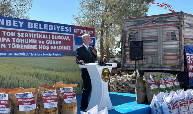 Şahinbey Belediye Başkanı Mehmet Tahmazoğlu, çiftçilere bin 700 ton tohum ve 2 bin ton gübre desteğinde bulundu.