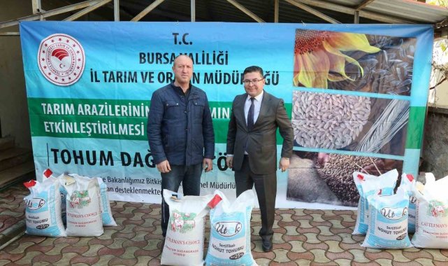 Programın ardından üreticilere, Bursa Tarım ve Orman Müdür Yardımcısı Mehmet Sülün, Bitkisel Üretim ve Bitki Sağlığı Şube Müdürü Ömer Doğan, Mustafakemalpaşa Tarım ve Orman Müdürü Nuri Oruç ve AK Parti Başkanı Mutlu Turgut tarafından tohumları teslim edildi.