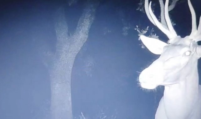 Kütahya'nın Tavşanlı ilçesinde bahçeleri bulunan vatandaşlar, ağaç fidanları ve sebzelerine zarar verenin şüphelendikleri keçiler değil geyik olduğunu fotokapan sayesinde öğrendiler.