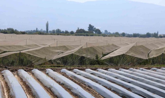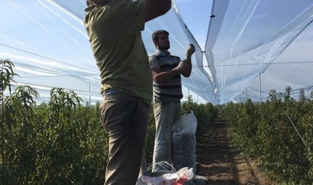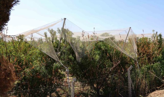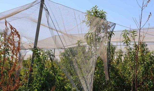 Aydın'da meyve üreticileri, ağaçların dolu ve kırağı gibi hava olaylarından etkilenmemesi amacıyla kullandıkları file sistemi, üreticilerin adeta doğal sigortası oldu.