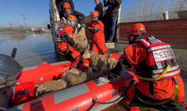 Edirne'de nehir taşkınlarının vurduğu bölgelerde mahsur kalan çiftlik hayvanlarını kurtarmak için geniş çaplı bir operasyon başlatıldı.