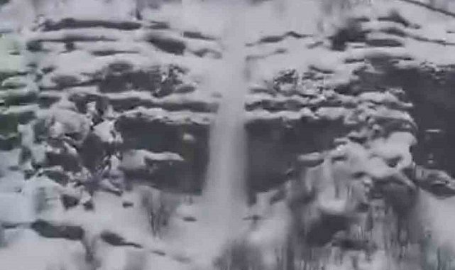 Şırnak'ta dağlarda biriken karın düşme anı cep telefonu kamerasına yansıdı.