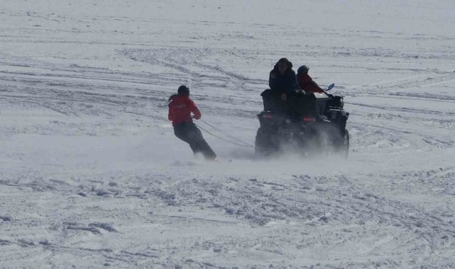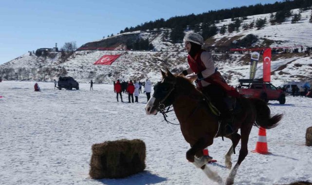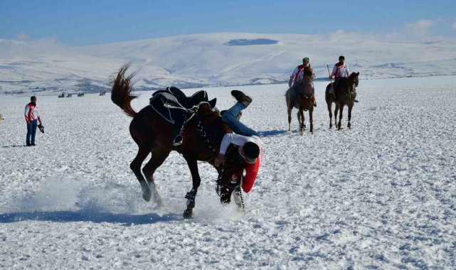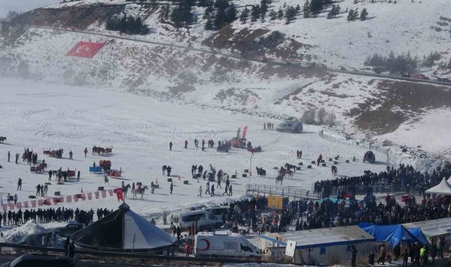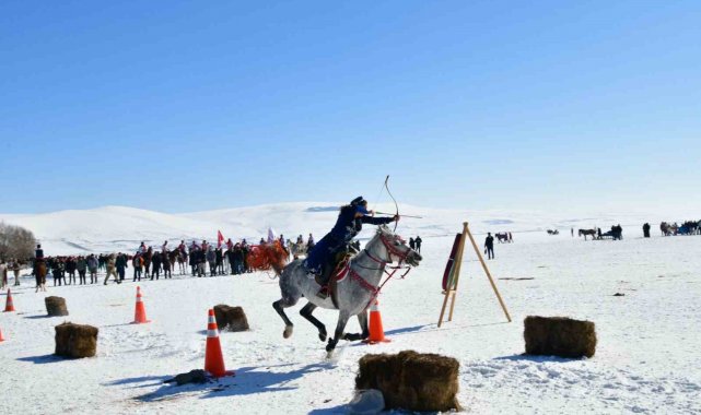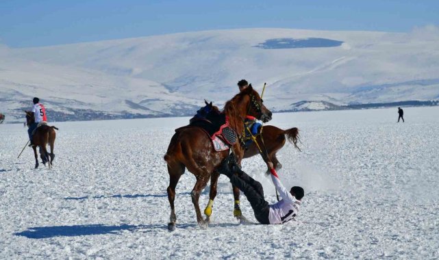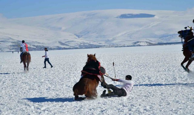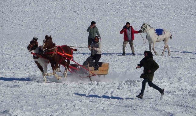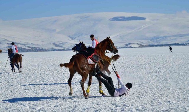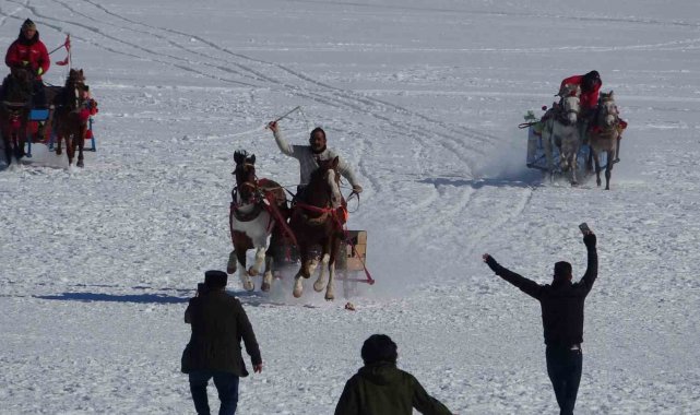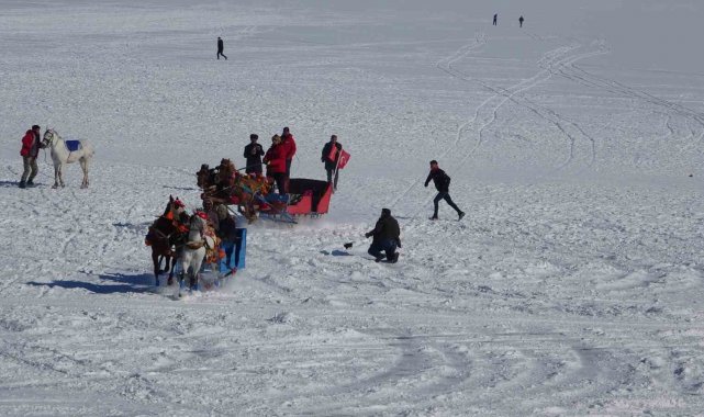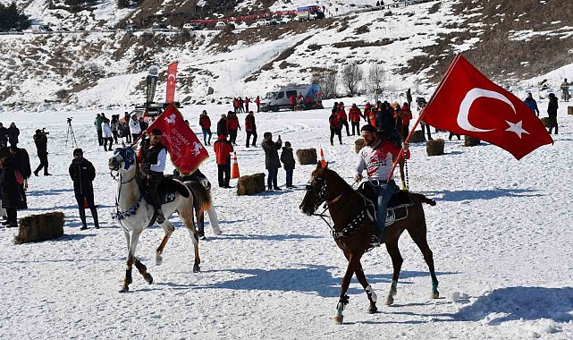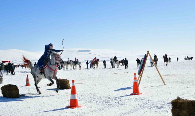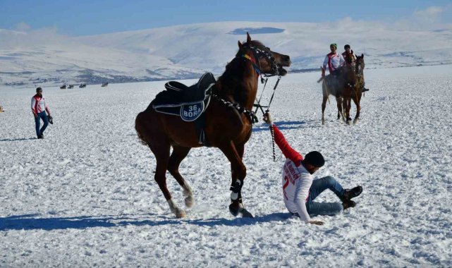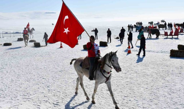 50 santimetre buz üzerinde gerçekleştirilen '9'uncu Çıldır Gölü Altın At Kristal Buz Festivali'nde atlı kızak, rahvan at yarışları, atlı okçuluk yarışı, cirit, buz pateni, kayak yarışları ve çeşitli etkinlikler düzenlendi.