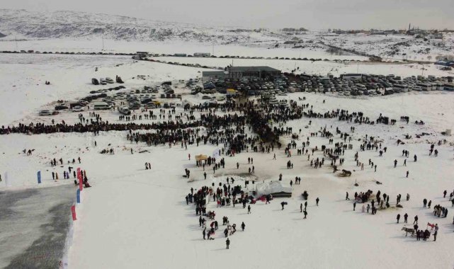 Kars sınırları içinde yer alan Çıldır Gölü'nde bu yıl ilki düzenlenen geleneksel Buz Şenliği'ne ilgi yoğun olunca adeta izdiham yaşandı.