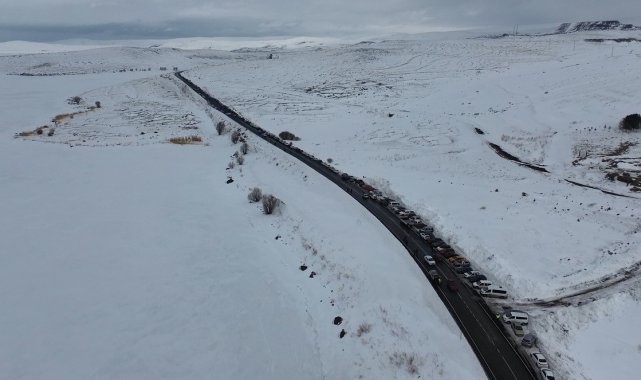 Kış turizminin parlayan yıldızı olan Kars'ın Arpaçay ilçesinde yer alan, kışın yüzeyi tamamen buzla kaplanan Çıldır Gölü, bu yılki Buz Şenliği için on binlerce ziyaretçiyi ağırladı. Ancak şenlik coşkusu 5 bin aracın oluşturduğu devasa bir kuyrukla birleşince ortaya hem çarpıcı hem de düşündürücü görüntüler çıktı. Şenlik alanına giden tek şeritli yollarda yaklaşık 5 bin araçlık bir kuyruk oluştu.