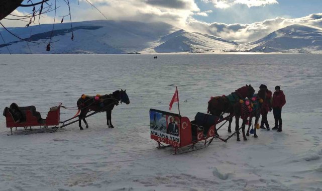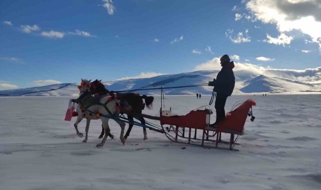Bu yıl donma olayının geç başladığını söyleyen atlı kızakçı Ufuk Ada, "Atlı kızak heyecanı başladı. Tüm yerli ve yabancı turistleri atlı kızağa ve sarı balığın tadını tatmaya Atalay'ın yerine davet ediyoruz. Gördüğünüz gibi Çıldır Gölü buz tuttu. Şubat ayında da festivalimiz var. Dünyanın dört bir yanından herkesi bekliyoruz" dedi.