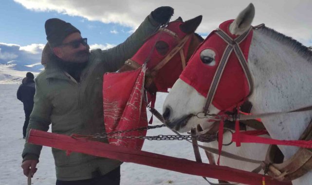 Çıldır Gölü'nde atlı kızak heyecanı başladı