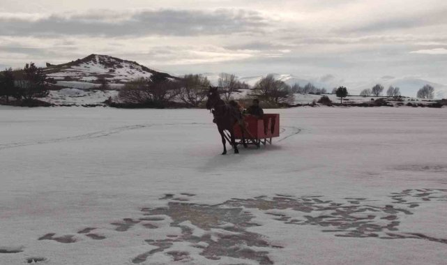 Kış boyunca tamamen donan göl yüzeyinde yapılan atlı kızak turları, havaların ısınmasıyla birlikte güvenlik nedeniyle durdurulmaya başlanıyor. Bölgedeki işletmeciler, buz kalınlığının incelmesi ve erime sürecinin başlamasıyla sezonu kapatma kararı aldı.