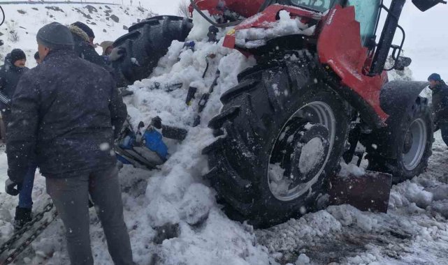 Ardahan'ın Çıldır ilçesinde buz tutan gölde kar temizliği yaparken buzun kırılmasıyla sulara gömülen traktör, yapılan çalışmalar sonucu gölden çıkarıldı.