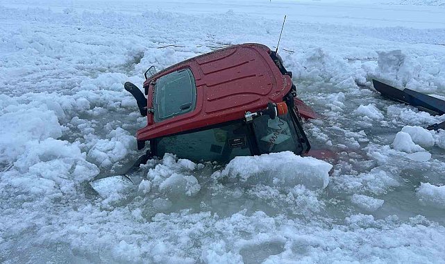 Çıldır Gölü yüzeyindeki buz kırıldı, traktör sulara gömüldü