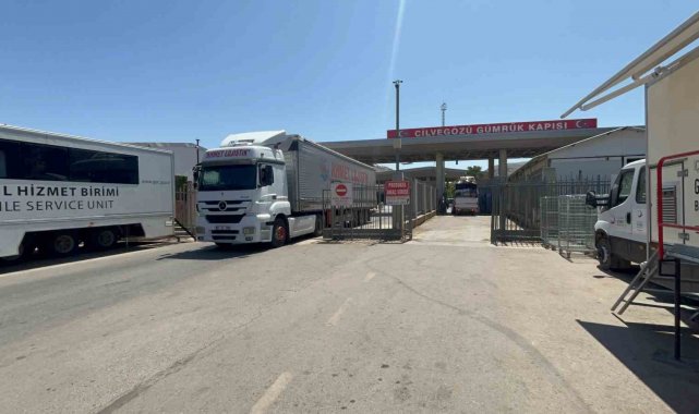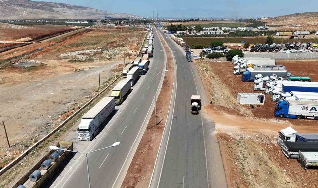 Hatay'dan Suriye'ye giden tırların bayram öncesi Cilvegözü Sınır Kapısı'ndaki yoğunluğu devam ediyor.