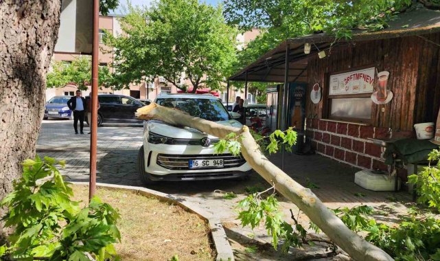 Bursa'nın Mustafakemalpaşa ilçesinde öğretmenevinin bahçesinde bulunan çınar ağacından kopan büyük bir dal, park halindeki aracın üzerine düştü.