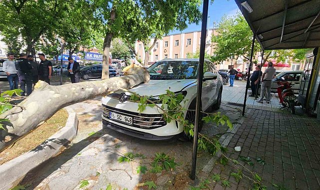 Çınar ağacının kopan dalı lüks araçta hasara yol açtı