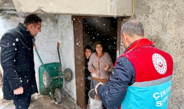 Hava sıcaklığının eksi 12 dereceye düştüğü Diyarbakır'da Çınar ilçesinde kaymakamlık, sokağa çıkamayan kimsesiz, hasta ve yaşlı vatandaşların evlerine sıcak yemek dağıtımı gerçekleştirdi.