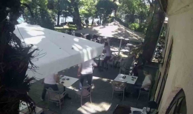 Can kaybına yol açan olay anı ise güvenlik kamerasına saniye saniye yansıdı. Görüntülerde çınar ağacından kopan dalın devrildiği anlar ve çevredekilerin panikle bölgeye doğru koşması yer aldı.