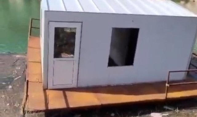 Aydın'da suların yükseldiği Çine Adnan Menderes Barajı'nda sürüklenen konteyner baraka ilginç görüntü sundu.