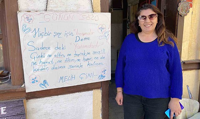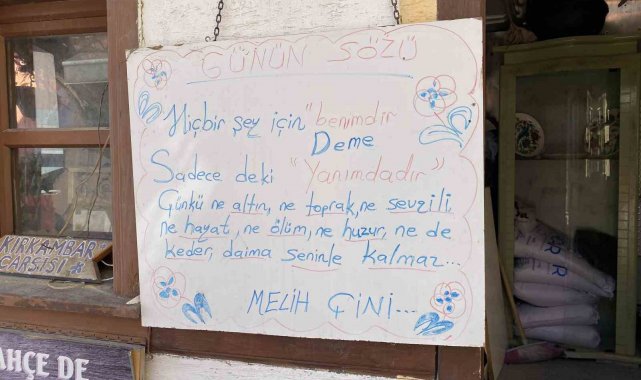 6 Şubat 2023'te Kahramanmaraş'ta 7,8 ve 7,5 büyüklüğünde 2 büyük deprem meydana geldi. Çok sayıda yapının yıkıldığı depremde 50 binden fazla vatandaş hayatını kaybetti. Tarihi Odunpazarı Evleri bölgesinde çini atölyesi bulunan Serpil Işık, yaşanan üzücü gelişmelere dikkat çekmek amacıyla dükkanının önündeki beyaz tahtaya 7 Şubat 2025'te bir yazı yazdı. 'Günün Sözü' başlıklı yazıda, "Hiçbir şey için 'benimdir' deme. Sadece de ki, 'yanımdadır.' Çünkü ne altın, ne toprak, ne sevgili, ne hayat, ne ölüm, ne huzur, ne de keder daima seninle kalmaz" ifadeleri yer aldı. Yaklaşık 2 yıldır aynı yerde duran yazının anlamlı mesajı, çevreden geçen vatandaşların dikkatini çekti.