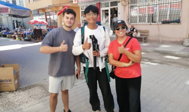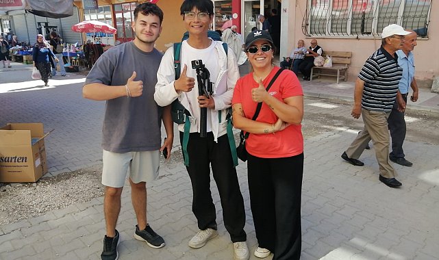 Çin'den yürüyerek yola çıkan Çinli genç, Kastamonu'nun Hanönü ilçesinde mola vererek ilçeyi gezdi.