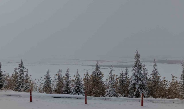 Elazığ'da üzeri buz tutan Cip Baraj Gölü, yağan karla beyaz örtüyle kaplandı.