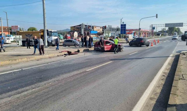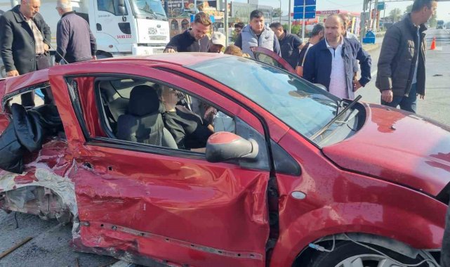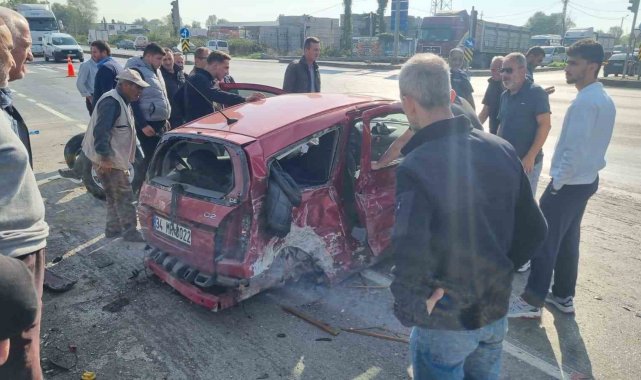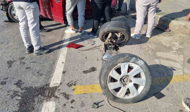 Cip ile çarpışan otomobilin arka tekerlekleri yola fırladı: 2 yaralı