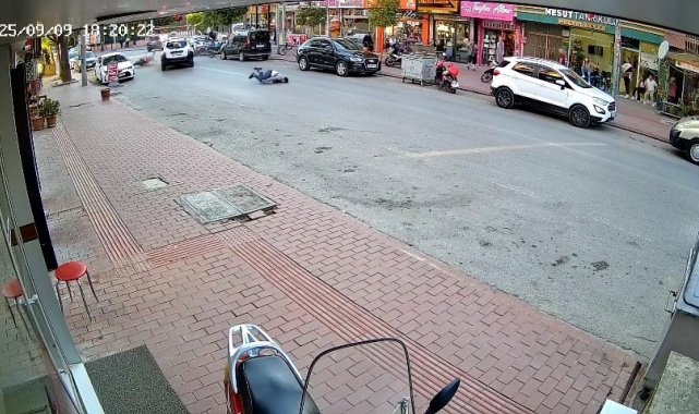 Bursa'da cipe çarpan motosikletli metrelerce havaya savruldu. Motosiklet sürücüsü ağır yaralanırken, kaza anı güvenlik kameralarına yansıdı.