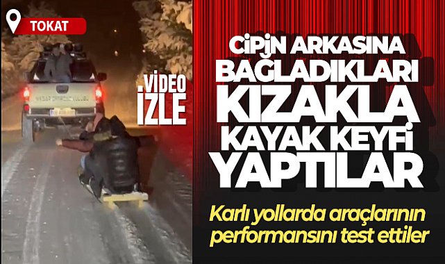 Tokat'ın Niksar ilçesinde bir off-road kulübü ekibi, cipin arkasına bağladıkları kızakla kayak keyfi yaptı.