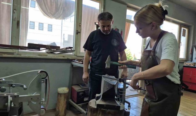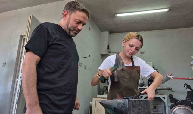 Babasının yanında bıçak ustalığını öğrenen Yaprak Altınışık ise asıl mesleğinin kuyumculuk olduğunu, babasının çalışmalarını gördükçe bıçak sanatına merakının arttığını söyledi. Altınışık, "Her mesleğin kendine göre bir zorluğu var. Şu anda çırak olarak ilerlediğim için daha çok zorlanıyorum. Bıçak yaparken daha çok gravür kısmında zorlanıyorum. Kabza kısmında işlemeler, dokular çalıştığımızda daha çok zorlanıyorum" dedi.