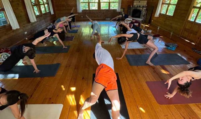 Türkiye'nin farklı illerinden ve yurtdışından gelen katılımcılar, doğa ile iç içe yoga ve pilates buluşmasında sahilde meditasyon, nefes egzersizleri ve doğa yürüyüşleri yaptı.