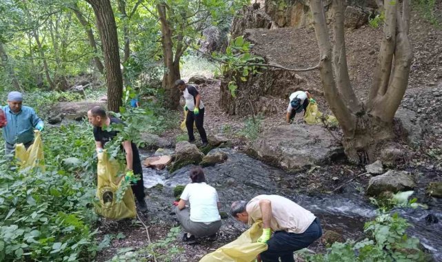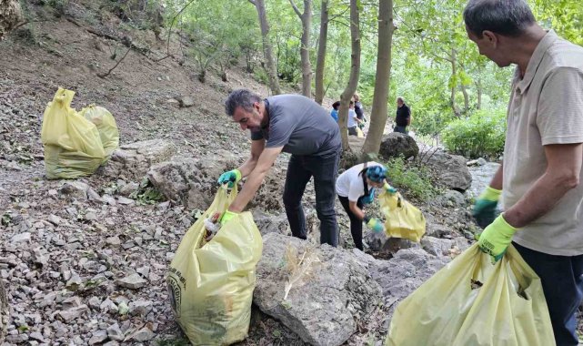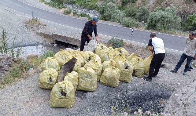 Hakkari'de bir araya gelen gönüllüler, Ava Ore Şelalesi ve çevresinde yaptıkları 4 saatlik çalışma sonucunda 33 çuval çöp topladı.