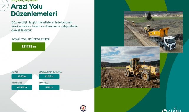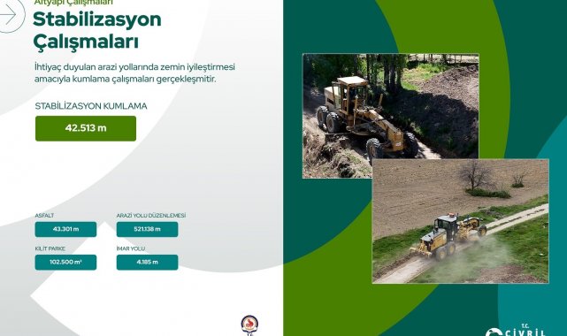 Kırsal mahallelerde de yoğun bir çalışma yürütüldüğünü ifade eden Başkan Dere, yağmur suları nedeniyle bozulan 521 bin 138 metrelik arazi yolunun yeniden düzenlendiğini, zemin sağlamlaştırması gereken 42 bin 513 metrelik yolun ise stabilizasyon kumlama çalışmasıyla iyileştirildiğini söyledi.