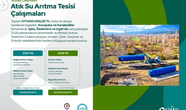 Daha sağlıklı ve yaşanabilir bir Çivril hedefiyle altyapı yatırımlarına büyük önem verdiklerini kaydeden Başkan Dere, 10 bin 217 metre yeni içme suyu hattı, 3 bin 138 metre kanalizasyon hattı ve bin 215 metre yağmur suyu hattının yenilendiğini açıkladı. Ayrıca 577 milyon TL'lik bütçe ayrılarak 2025 yılında Kocakaya, Karabedirler, Işıklı, Irgılı ve Özdemirci mahallelerinde atık su arıtma tesislerinin kurulduğunu, Çivril Merkez Arıtma Tesisi ile Güzelpınar, Emircik ve Çıtak-Kıralan Mahalleleri arıtma tesislerinin yapım çalışmalarının ise devam ettiğini ifade etti.