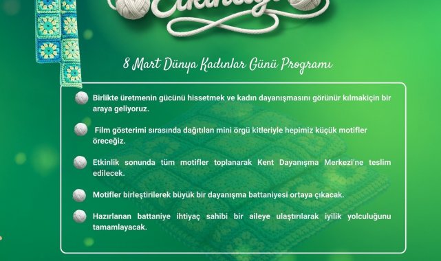 Çivril Belediyesi, Dünya Kadınlar Günü kapsamında "Birlikte Örüyor, Birlikte Isıtıyoruz" temasıyla motif örme etkinliği ve film gösterimi düzenleyecek.